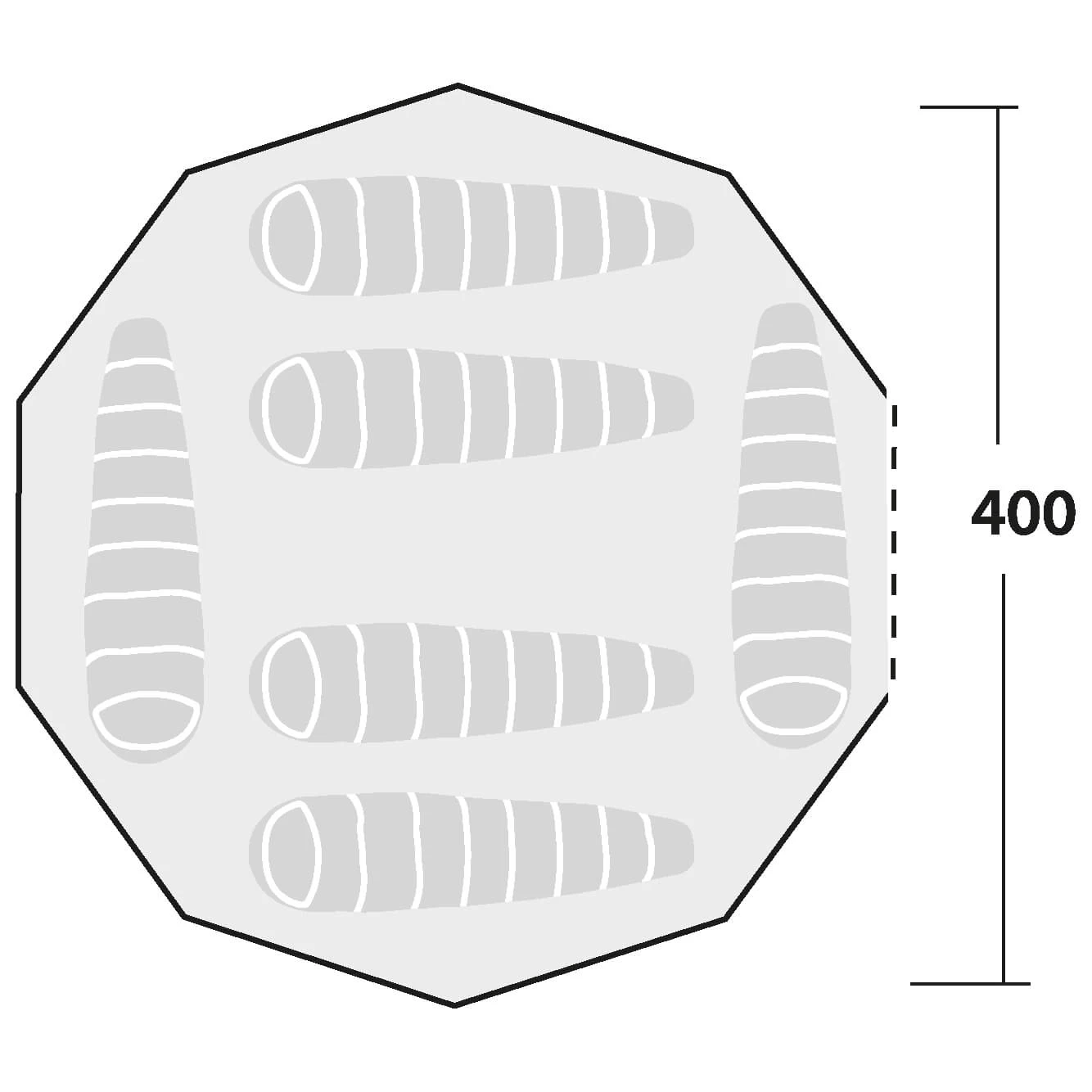 Das Klondike Grande Gruppenzelt von Robens ist so groß, dass neun Personen komfortabel darin schlafen und fast alle darin stehen können. Das Klondike Grande Zelt ist wegen des atmungsaktiven Zeltmaterials aus einem Fasergemisch von Baumwolle und Polyester perfekt für warme Klimazonen geeignet. Das HydroTex Polycotton Außenmaterial sorgt für wenig Kondenswasserbildung, ein angenehmes Raumklima und schützt vor Regen. Zu diesem Zweck hat das Zelt umlaufende Traufe, die verhindern, dass der Regen über Fenster und Türen ins Innere laufen kann. Das Zelt mit Mittelstange ist trotz seiner Größe und Höhe von 3 m rasch aufstellbar mit wenigen Helfern. Die halbmondförmigen Fenster an den Seiten mit Moskitonetz und Zippverschluss für die Verdunklung sind wichtige Elemente des Belüftungssystems, das mit der auf- und zuschließbaren Ventilationsluke der inneren Apex Vent Control an der Tipispitze das komplette Zelt ventiliert. Die Ventilationsluken können an der höchsten Stelle des Tipis auch von innen geöffnet und geschlossen werden. Das Aluminiumgestänge mit der langen Mittelstange im Zentrum sorgt beim Klondike Grande von Robens in Kombination mit den clever angebrachten Abspannleinen und den verstärkten Abspannpunkten für eine enorme Stabilität dieses Zeltes. Es wurde im Windkanal getestet, wo es Windstärken von 150 bis maximal 160 km/h trotzte, also noch sturmstabil ist bei 11 bis 12 Beaufort. Der Zeltboden aus robustem Oxford-Polyester ist herausnehmbar, was praktisch ist bei der Reinigung und Trocknung des Bodens oder – aufgerollt – als Platz für triefend nasse Bekleidung. Die im Tipidach vorinstallierte Öffnung für ein Ofenrohr ermöglicht bei Kälte den Betrieb eines klassischen Yukon-Bollerofens mit Ofenrohr wie des Denali Tent Stove von Robens. Durch Wegrollen des Zeltbodens erhält man einen sicheren Standplatz für den Ofen. Falls man keinen Ofen braucht, ist der zeltbodenfreie Platz gut geeignet für schmutzige Stiefel oder triefend nasse Bekleidung.